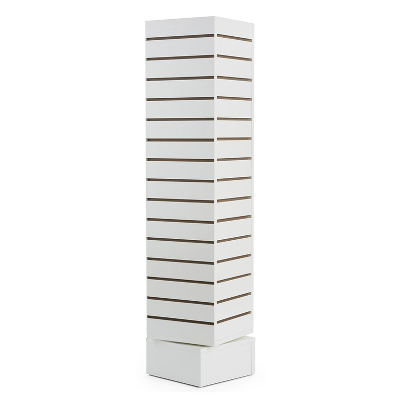 Esta pantalla de listones giratoria tiene una altura de 54' y cuatro lados de 12' de ancho.Cada expositor minorista con base giratoria con acabado blanco permite a los clientes girar cada accesorio 360° para obtener la máxima visibilidad de la mercancía.Esta pared de listones giratorios muestra 15 listones estándar por lado para colgar ganchos, cascadas, letreros y estantes.Cada accesorio de exhibición minorista es ideal para la comercialización en áreas concurridas de alto tráfico.Esta torre de 12' de ancho con acabado blanco y lados de 15 listones se envía completamente ensamblada y es compatible con accesorios estándar de exhibición de pared de listones.