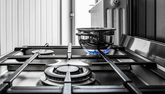 Equipe su cocina con una estufa comercial para que pueda hervir, saltear y cocinar alimentos