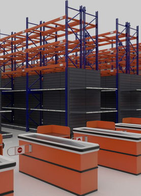 Aproveche nuestras estanterías de gran amplitud para exhibir mercancías pesadas en el perímetro de su tienda.Si lo que prefiere es el aspecto industrial, nuestras estanterías de gran amplitud también se pueden colocar en el centro del espacio, creando una unidad de comercialización de doble cara.